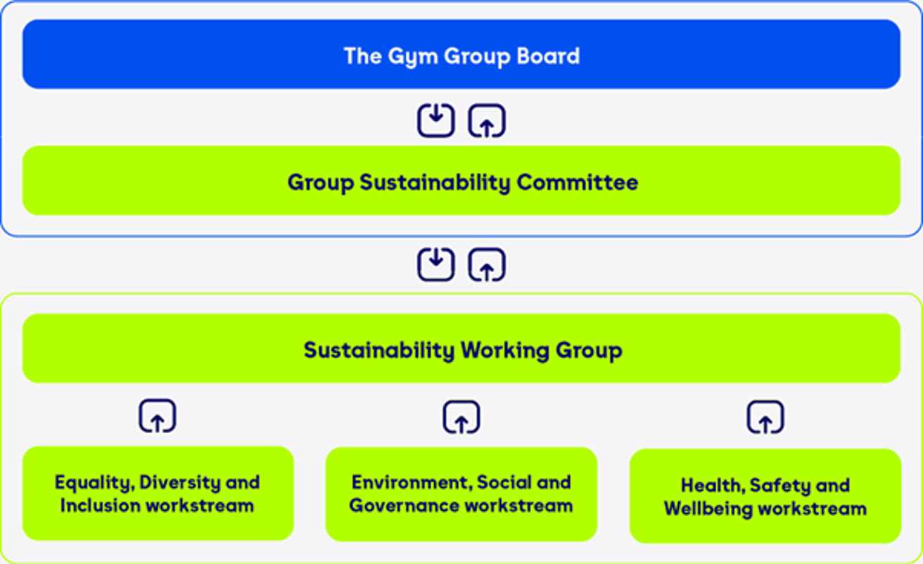 Robust governance practices are a fundamental foundation for a sustainable business. Our Sustainability Committee is composed of Board and Executive Committee members and reports to The Gym Group plc Board to ensure sustainability is at the core of our business. The Committee has oversight of corporate responsibility for sustainability, reviews sustainability targets and commitments and oversees the assessment of climate-related risks and opportunities, including the requirements of the Task Force on Climate Related Financial Disclosures (‘TCFD’). The Committee receives reports from three key workstreams: